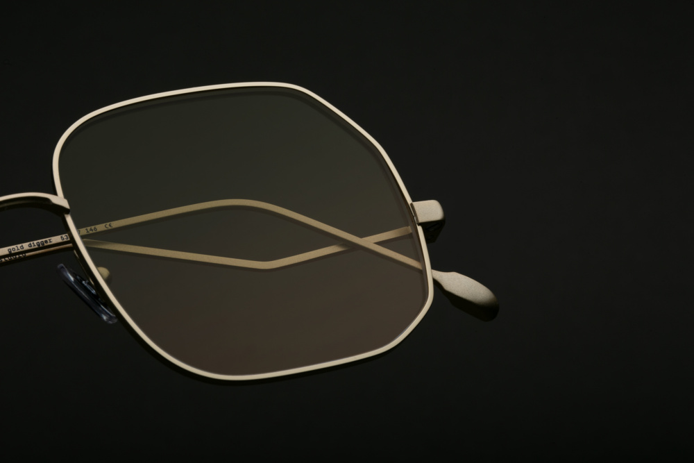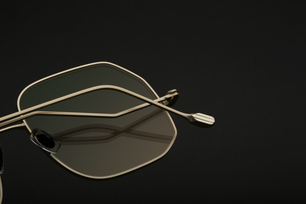 directly inspired from the 70’s. sharp edges signature rim wire. 1.4mm monoblock low temple with end tips signature. 3.7mm monoblock futureproof® signature hinge feat. tefnic™. faceted signature bridge. lazare studio soft precious silver coating enhanced by a palladium & gold plating process. signature nose pads. 3.0 base  mustard green gradiant 100% uv cr39 lenses with backside anti-reflective coating. handcrafted in france with premium japanese components.